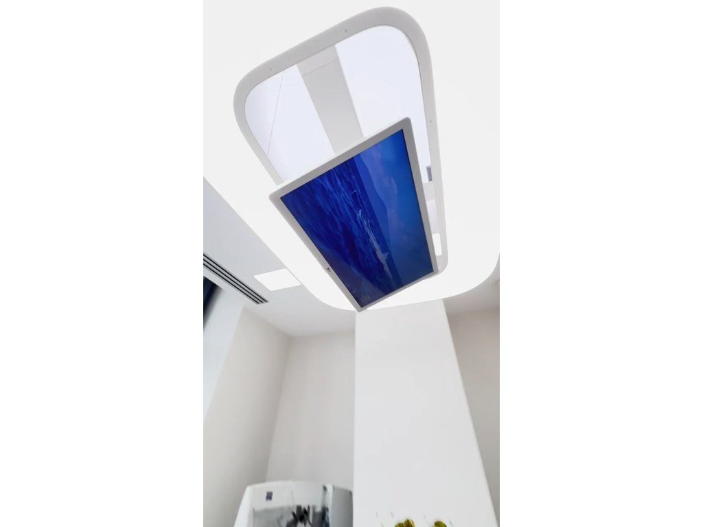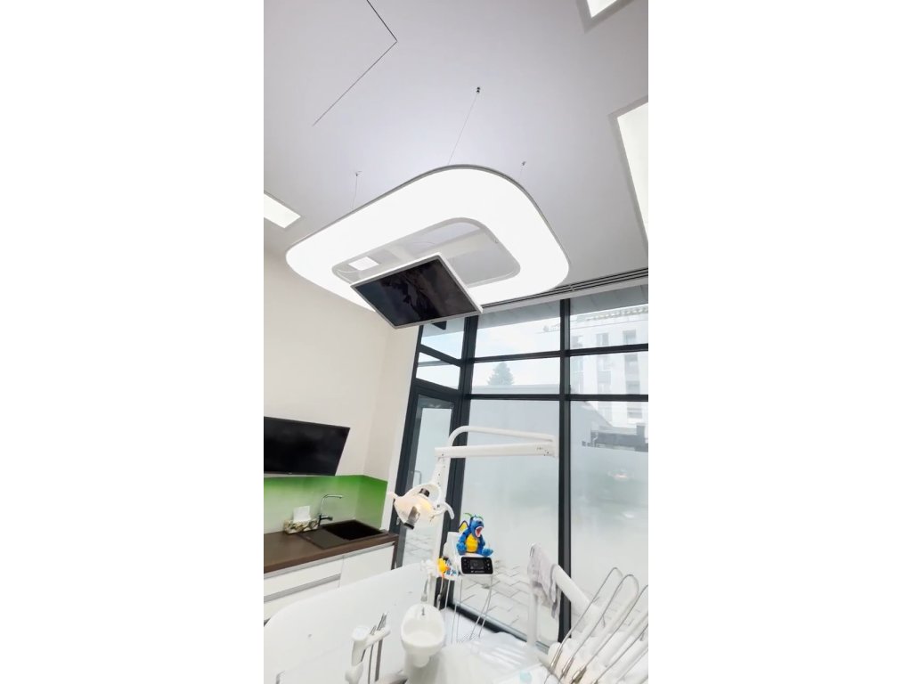 Varianta s držákem monitoru - oblíbená varianta, která umožňuje instalaci monitoru do středového prostoru. Volbu a konektivitu necháváme na zákazníkovi, u nás si můžete objednat svítidlo a kloubový držák, který umožní natočení a naklonění monitoru. Rozteče pro montáž monitoru jsou standardně 10x10 cm. Velikost monitoru doporučujeme do 19,5", aby nezakrýval světelnou plochu. Častým motivem použití této varianty je promítání pohádek, nebo přírodovědných dokumentů, ale také přenos intraorální kamery, či mikroskopu...